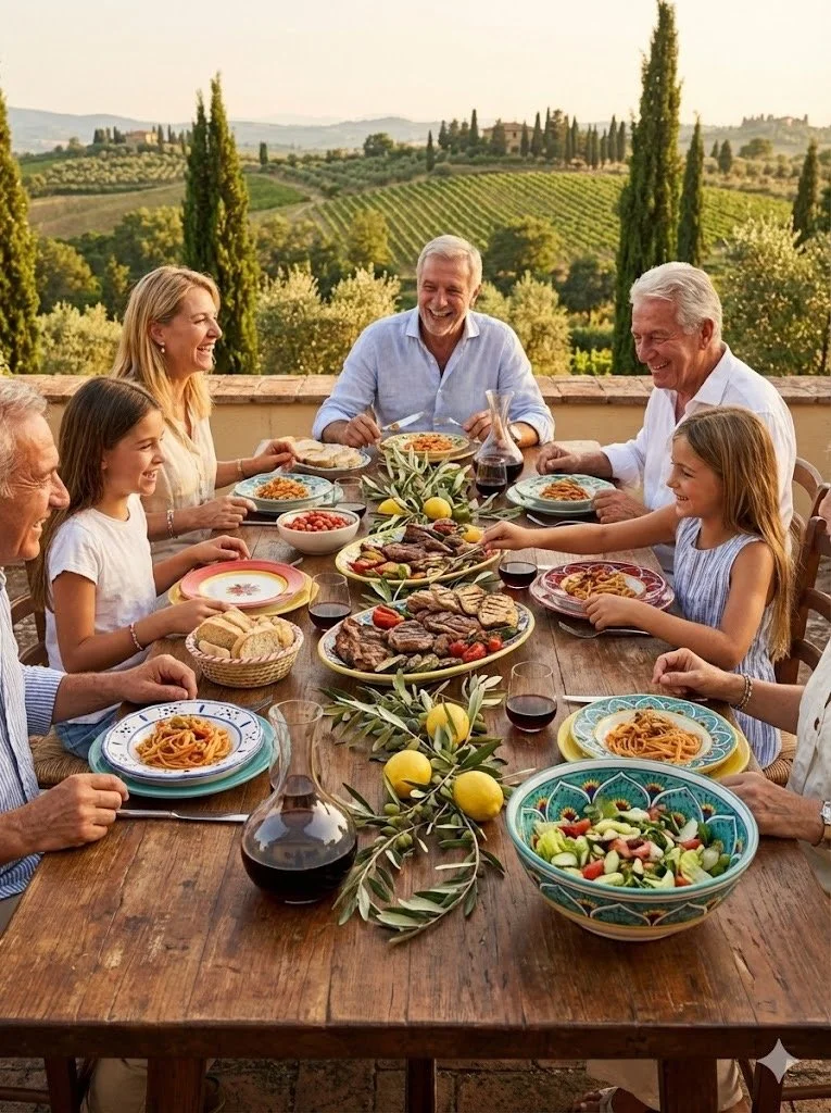 In Italy, a full table isn’t just about food — it’s about family, conversation, and the everyday beauty of gathering together.