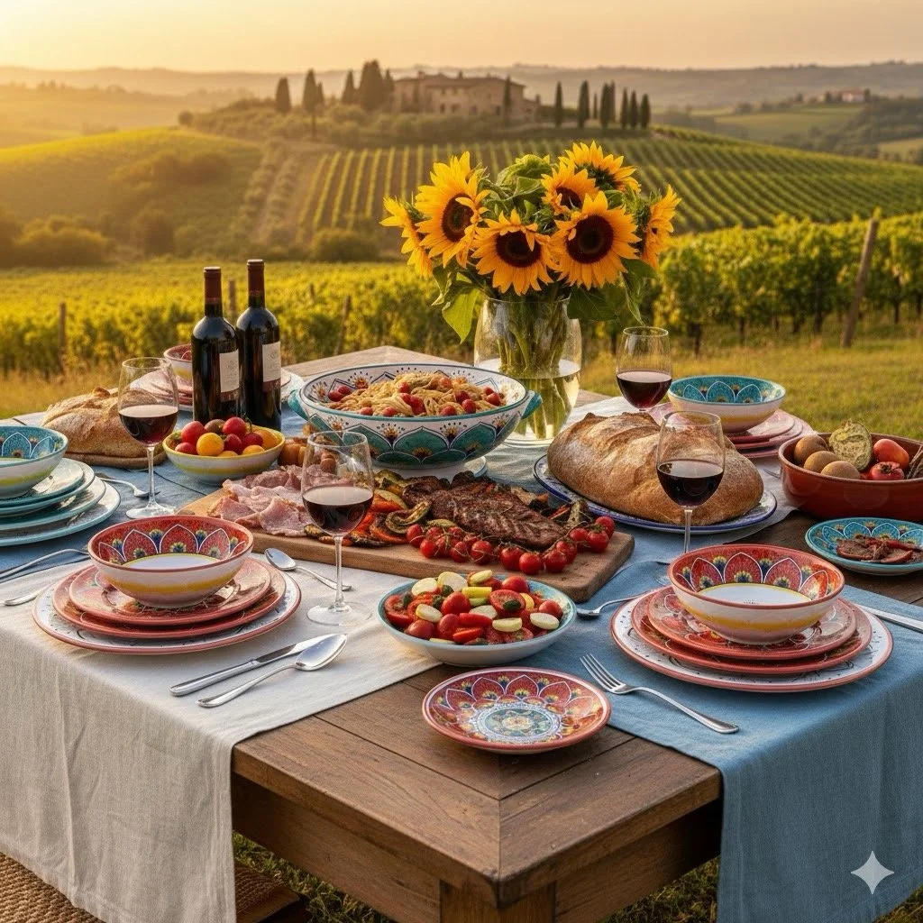 On my travels through Tuscany and Umbria, I fell in love with the artistry of Italian ceramics — the way each plate, bowl, or cup is hand-painted with care, meant to be used and enjoyed, not tucked away behind glass. These pieces carry centuries of tradition, yet they feel right at home in a simple weeknight meal.