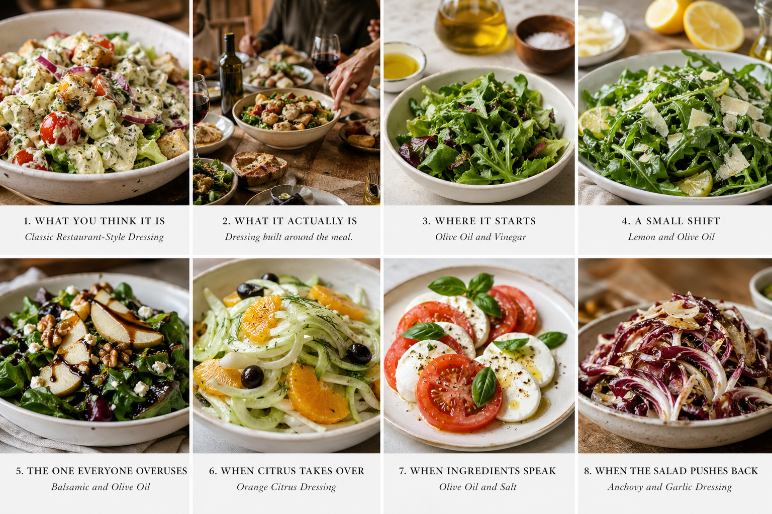 This is built to carry multiple ingredients at once. It turns a salad into a single, unified flavor. And it quietly teaches you something: That the dressing is the point.