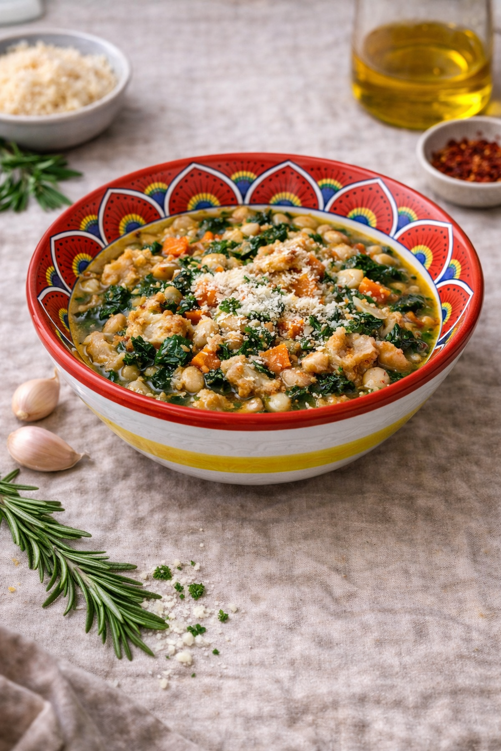 They are not meant to be exhaustive or complicated. Instead, they are the kinds of dishes that belong in the center of the table — rustic soups, simple antipasti, good bread, generous platters, and comforting main dishes meant to be passed from hand to hand.